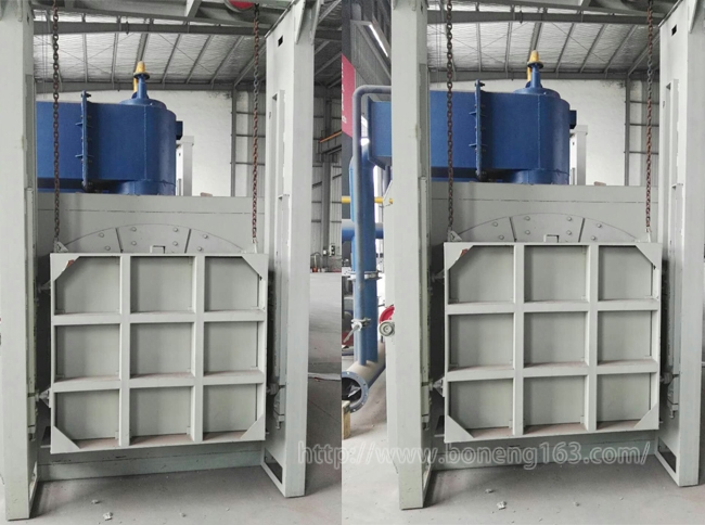 炉门采用上下双炉门结构,上层炉门用于上料,下层炉门上下升降,方便高温取料,由于只开启下部分炉门,上部分炉门关闭,炉膛热损失小,取料时不易降温。