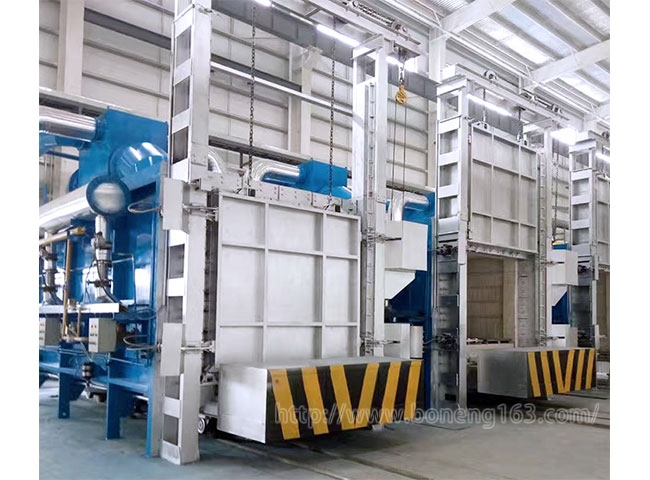 燃气式台车时效炉标准节能型周期式作业炉,节能结构。台车采用防撞击密封砖,炉门采用弹簧式压紧机构,自动密封台车和炉门,一体化连轨,不需基础安装,放在水平地面即可使用。主要用于高铬、高锰钢铸件、球墨铸铁、轧辊、钢球、法兰环件、工具钢、45钢、不锈钢等淬火、退火、时效以及各种机械零件热处理之用。