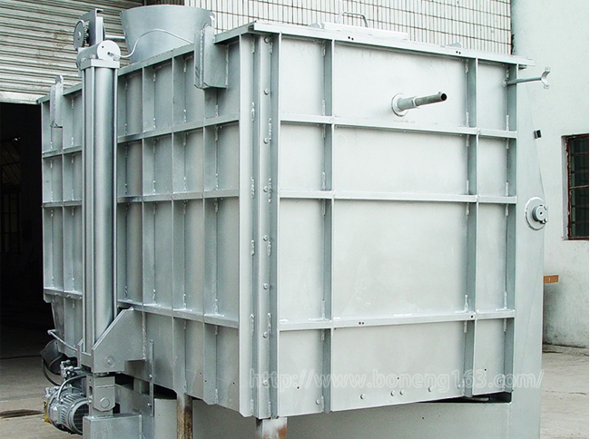 5、全自动投料装置,由提升,开盖,下降,关炉盖连续工作一次性完成,控制系统采用PLC可编程程序控制器,设计先进合理,运行安全可靠,具备与计算机通信功能